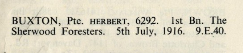 Herbert joined the Notts and Derby (Sherwood Foresters) Regiment, 1st Battalion in 1914, his regimental number was 6292.