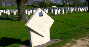 It was at Essex Farm Cemetery that Lieutenant Colonel John McCrae of the Canadian Army Medical Corps wrote the poem In Flanders Fields in May 1915.