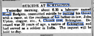 Aug 3rd 1898 – Hugh Rodgers cut his throat in Church Row, Eckington